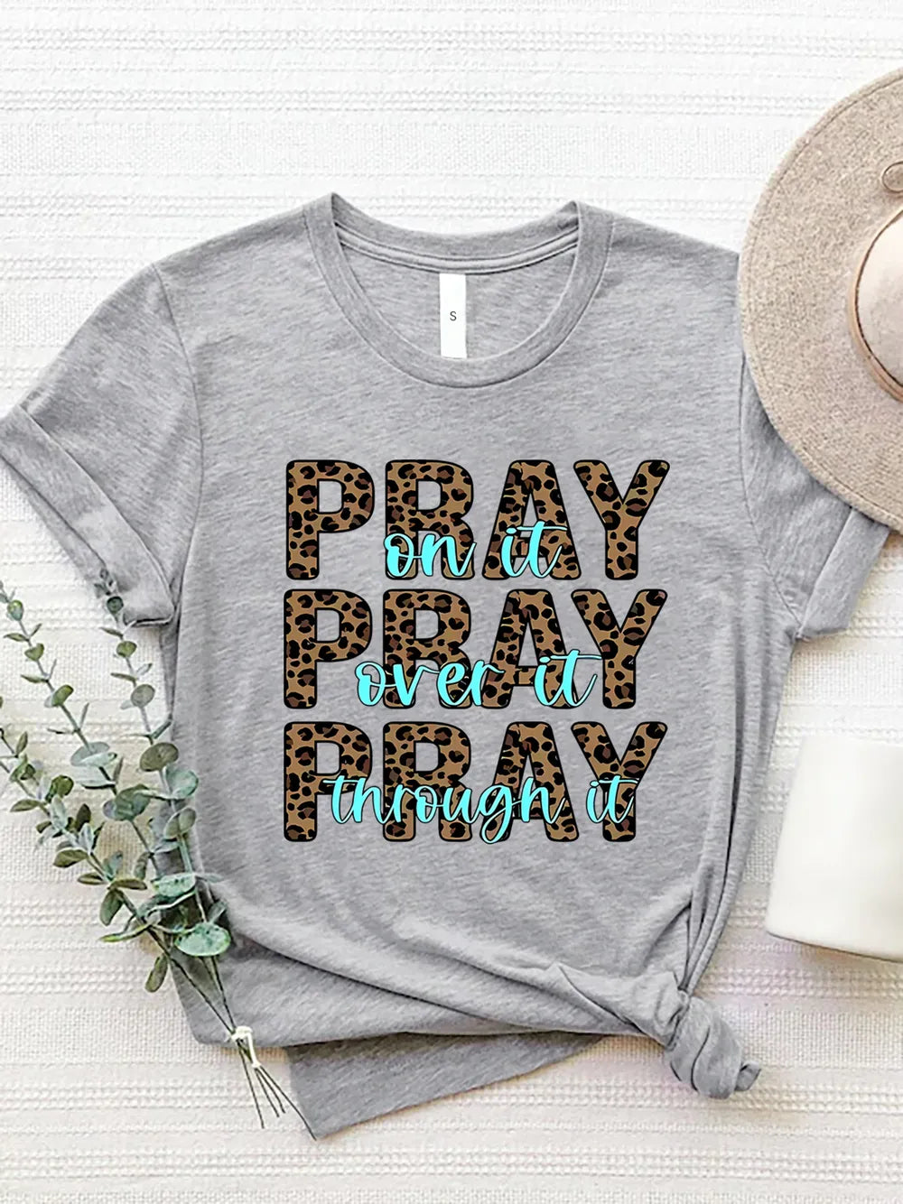 Pray On It, Pray Over It, Pray Through It Round Neck T-Shirt