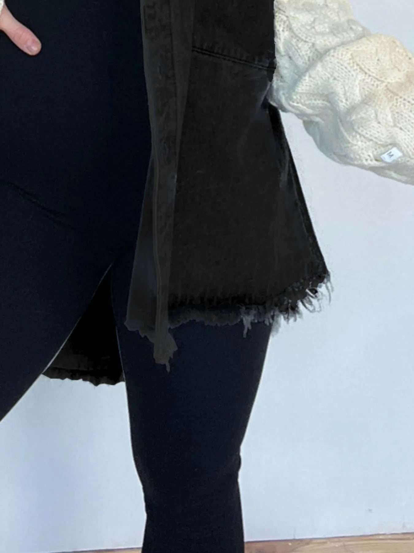• Features: Raw Hem, Pocketed, Cable-Knit